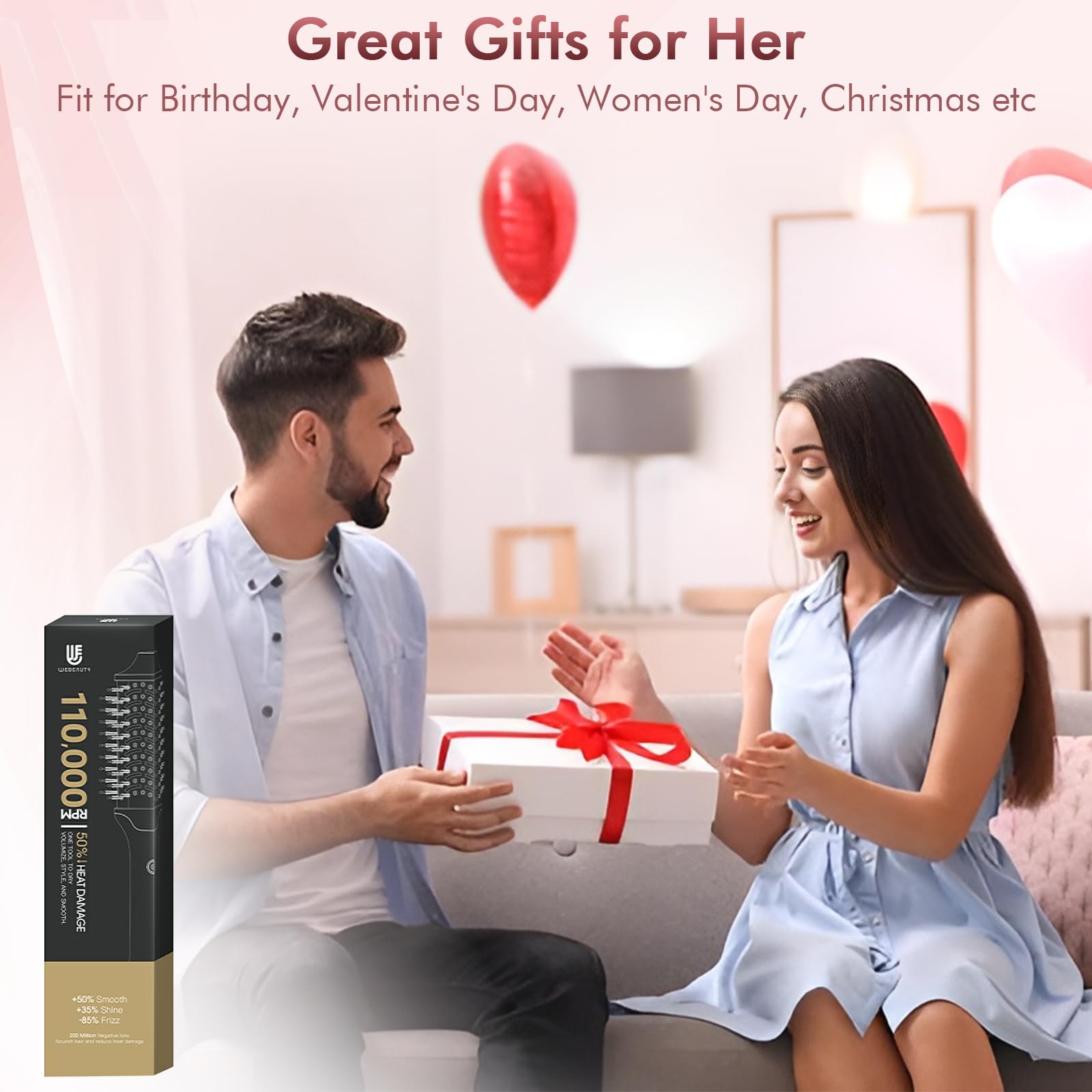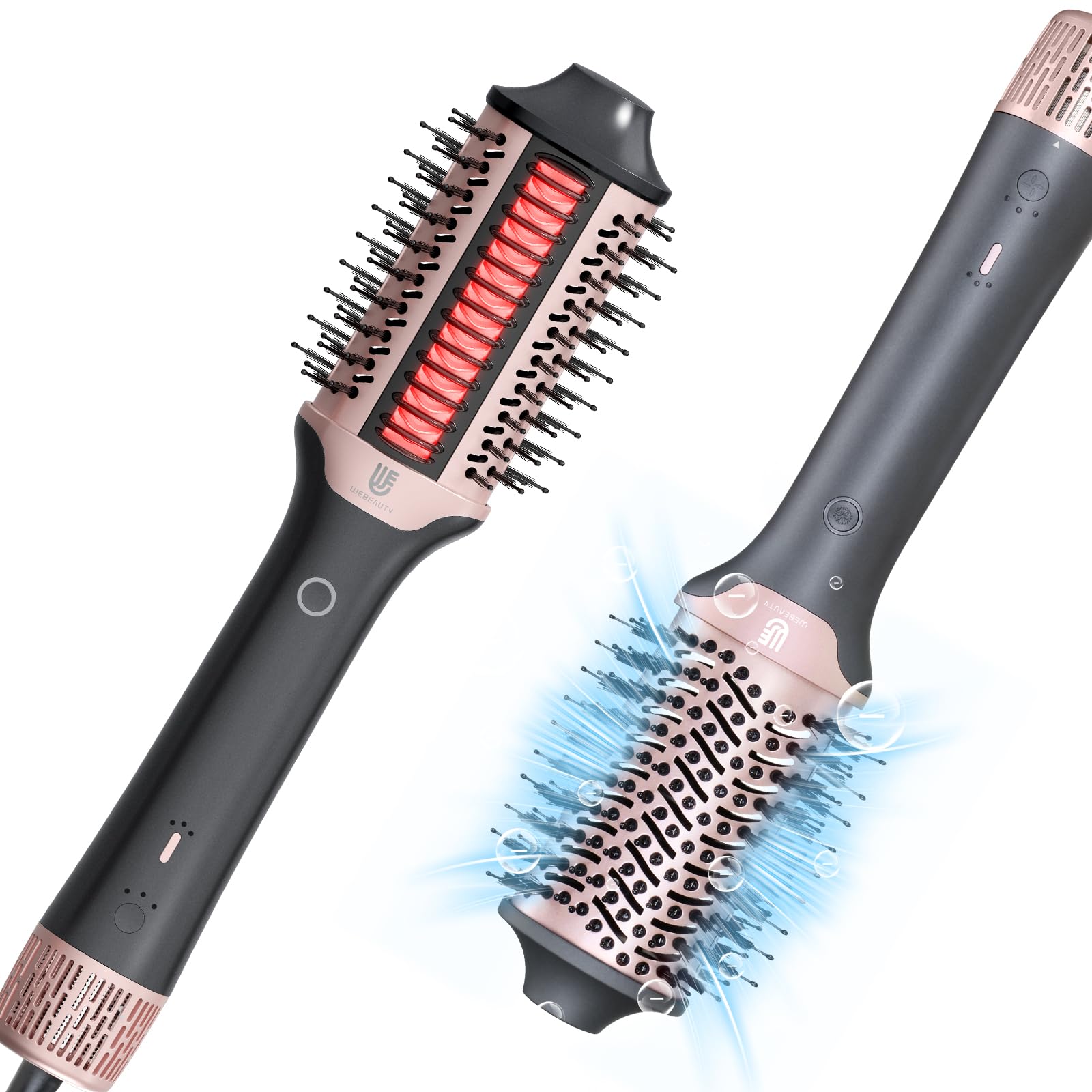2-in-1 Blow Dryer Brush & Hair Straightener, Ionic & Ceramic Thermal Brush with Adjustable Heat & Cool Shot 110000 RPM Motor High-Speed Motor for Frizz-Free, Smoother & Voluminous Hair, Grey with Use
