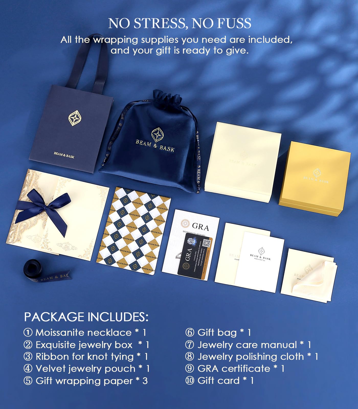 Beam & Bask 2 Ct Moissanite Double Heart Pendant Necklace for Wife, 18K Gold Plated S925 Silver Jewelry for Women Girlfriend Mom Her on Anniversary Birthday