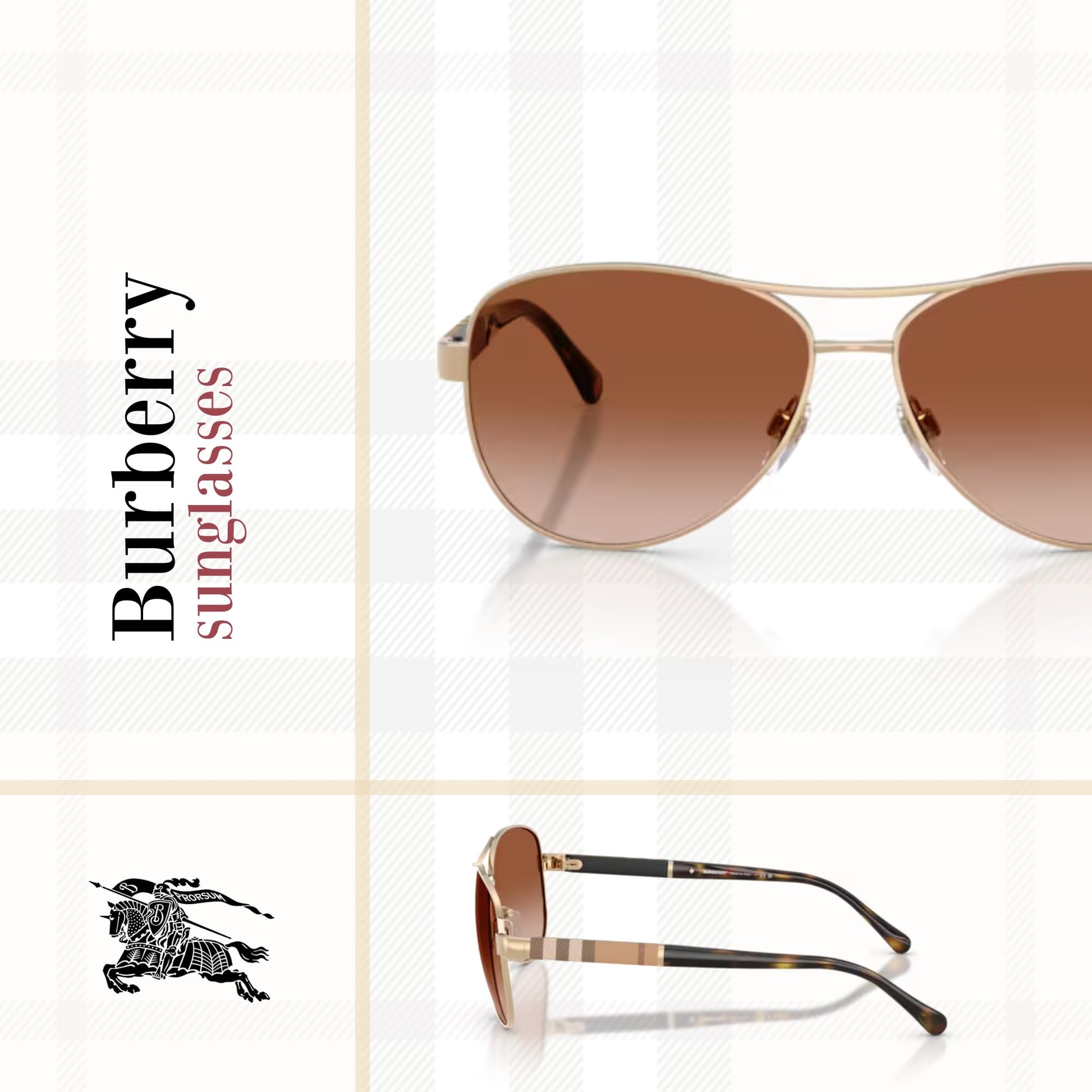 BURBERRY BE3080 114513 59M Light Gold/Brown Gradient Aviator Sunglasses For Women+BUNDLE with ACCESSORY EYEWEAR KIT