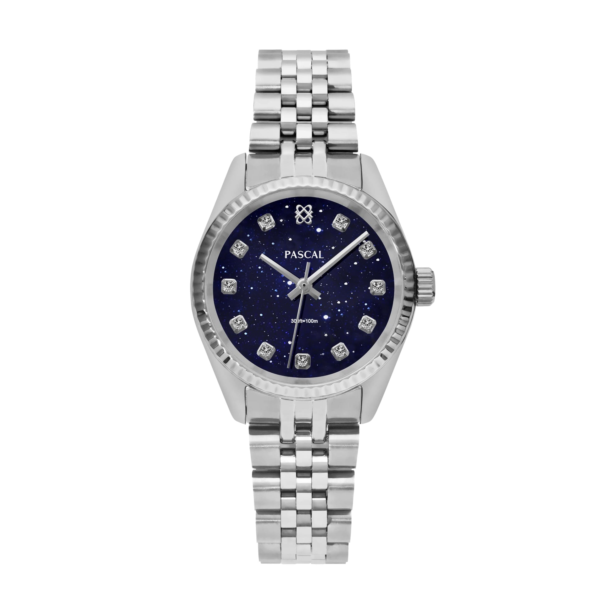 PASCAL Timeless Classic Diamond Watch for Women – Swiss Quartz Timepiece with Lab-Grown Diamonds & Sapphire Crystal (Navy,31MM)