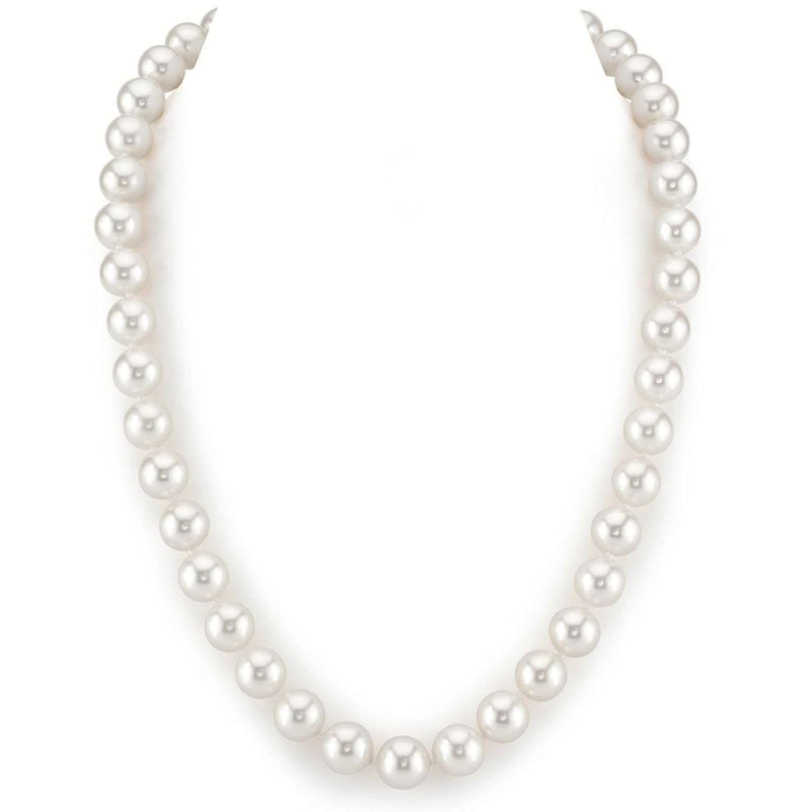 The Pearl Source 14K Gold Real Pearl Necklace for Women with AAA+ Quality Round White Freshwater Genuine Cultured Pearls (Yellow Gold, 9.5-10.5mm)
