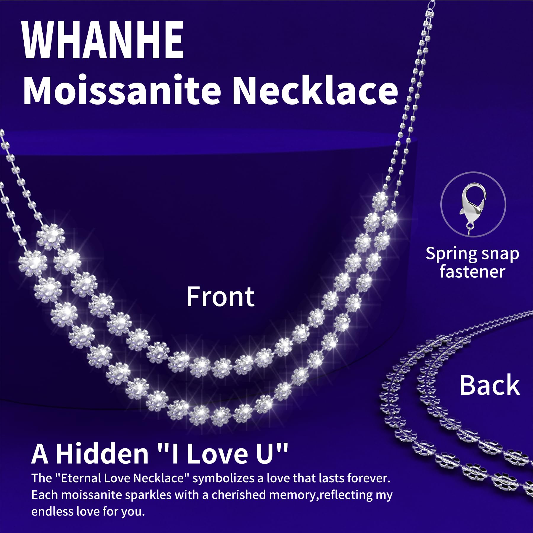 WHANHE Moissanite necklace for women, anniversary or wedding necklace for your wife, elegant gift for your loved one, birthday or Christmas jewelry (silver)